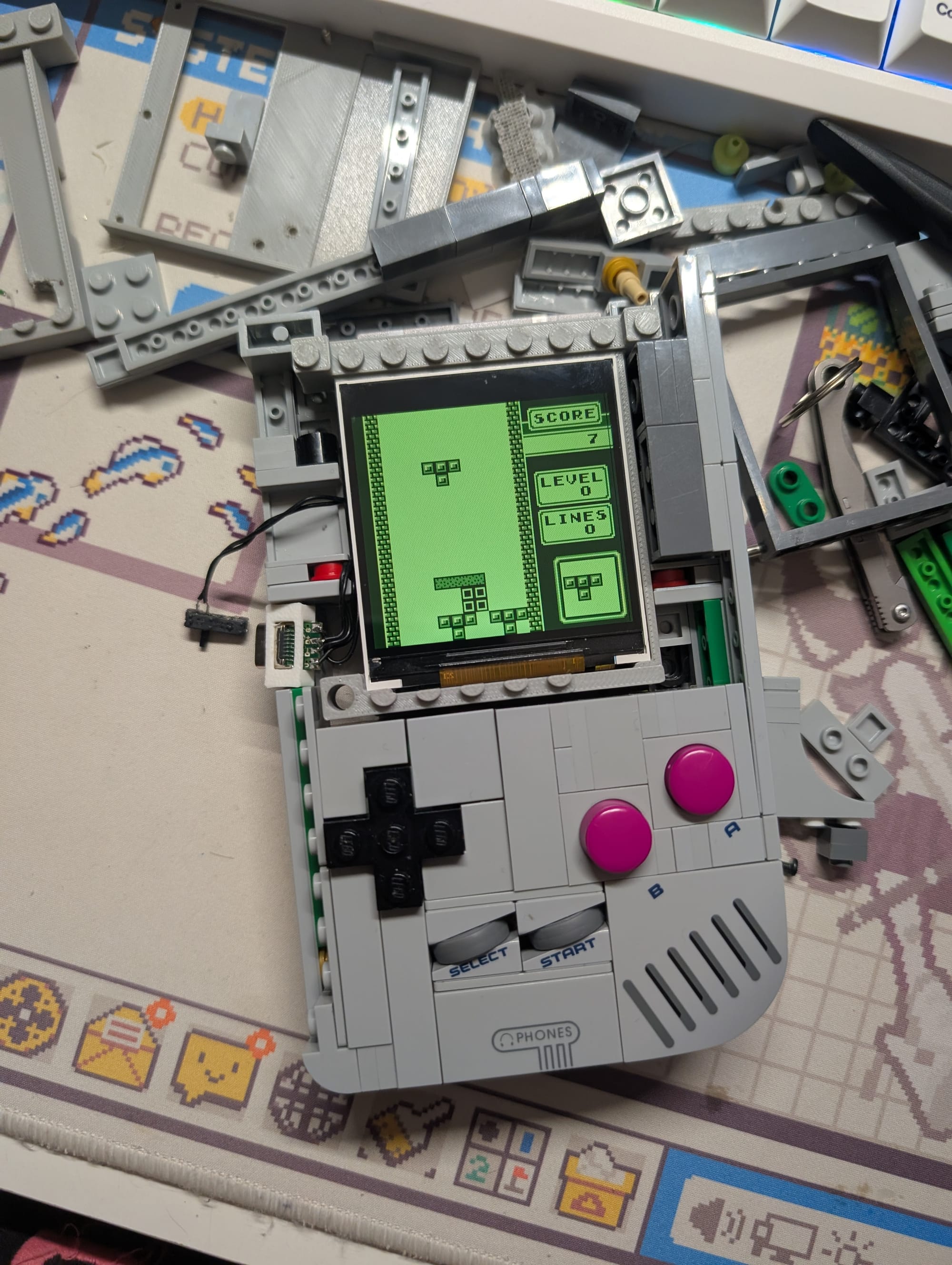 The electronic circuit is basically done - my biggest challenge at the moment is making everything fit nicely... And also making the buttons feel good as well. I'm super happy with the A, B, Start and Select buttons, but the DPad is inconsistent.